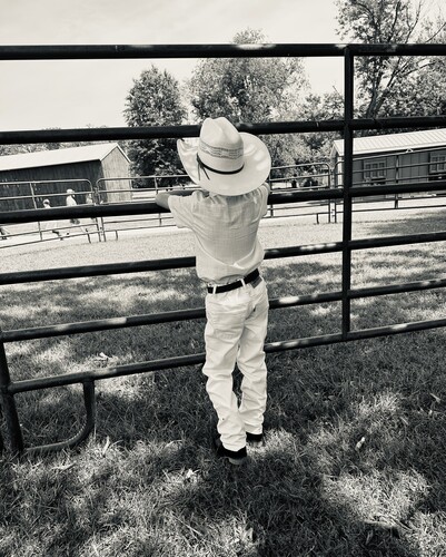 Kid to Kid Connection - Gavin snuggling with his goat Oreo (nubian doeling) and getting investigated by Angel (oberhasli doeling) after completing farm chores with his furry friends in the Large Dairy Squad as an active FLEP volunteer and 4H member in the Nursery Field on December 2, 2025. by Margaux Carlin