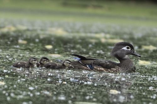 On the Move - Wood Ducklings with mother taken at Cattail Pond on May 10, 2014 by Sharon Bloomfield