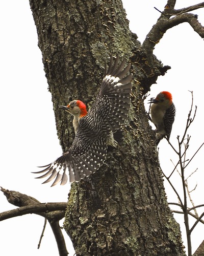 Taking Flight - Red Bellied Woodpeckers taken along path by the shed & small pond on May 10, 2014 by Sharon Bloomfield