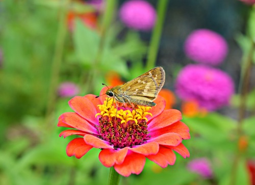 Zinnias in the Garden - Taken in the garden area of Kinder Farm Park on August 29, 2014 by Kathleen Nutter