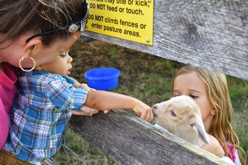 Kids Sharing - Taken at the goat pasture with the week old baby goat on October 18, 2014 by Linda S. Hall