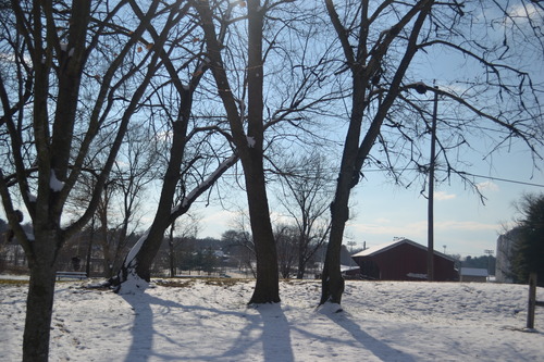 Tree Shadows - Taken on December 10, 2017 near the fenced path that leads to the playground and near the red barn by Cindy Myers