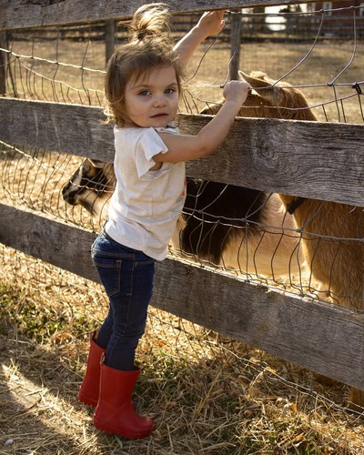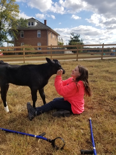 Alice: Friend of the Goats - Taken on March 14th, 2019 at the goat enclosure closest to the Cow Barn. Hanging out with Dakota, Basil, Seven, and other goat friends by Samantha Baugher