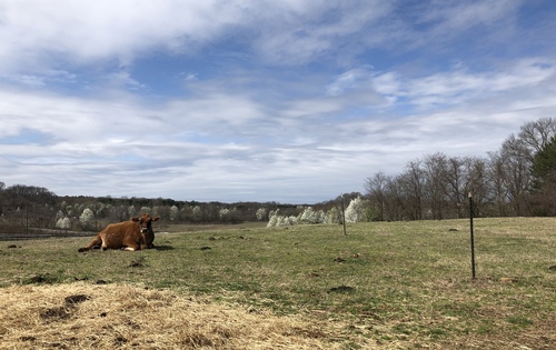 One Happy Cow - Taken in the cow pasture on April 8, 2020 by Donna Corcoran