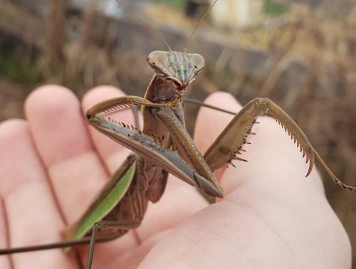 Mantis Grooming - The mantis was climbing around the garden near the chicken coop and the Blackberry Trail fence near the garden. Taken on November 21 2020 by Shane Windsor