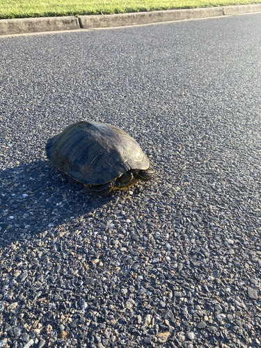 Why did the turtle cross the road? - Taken on the park entrance road before being relocated to a safer spot on May 29, 2022 by Elsie Hoy