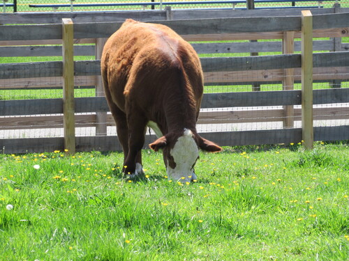 Out-standing in His Field - The cow was standing in a field of buttercups on a pretty spring day. The photo was taken on April 16, 2024. by Karen Schoenaar
