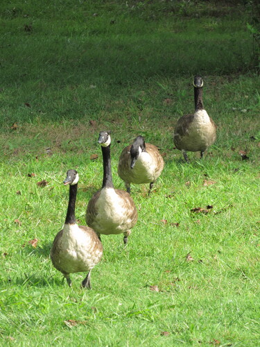 Follow the Leader - These geese were headed for the Duck Pond near the windmill when I took this photo on August 13, 2024. by Karen Schoenaar