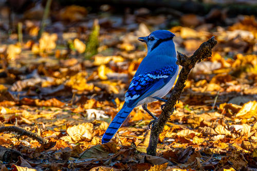 Still Waters, A Bluejay's Autumn Rest - Taken over the water in Bunks Pond on November 2, 2024. by Kurt DeLorenzo