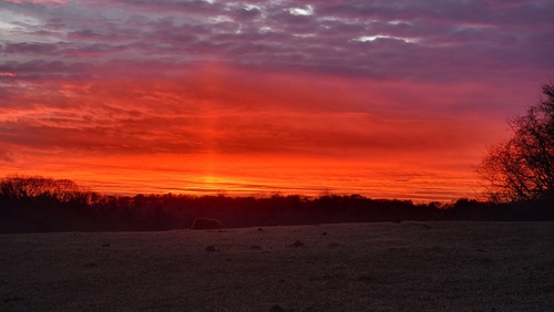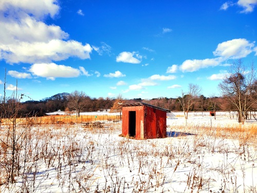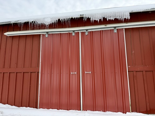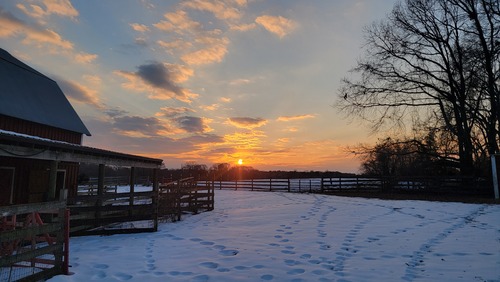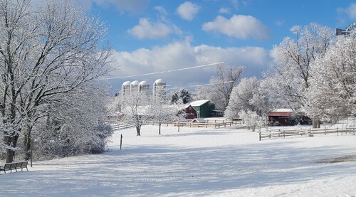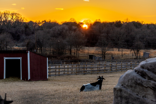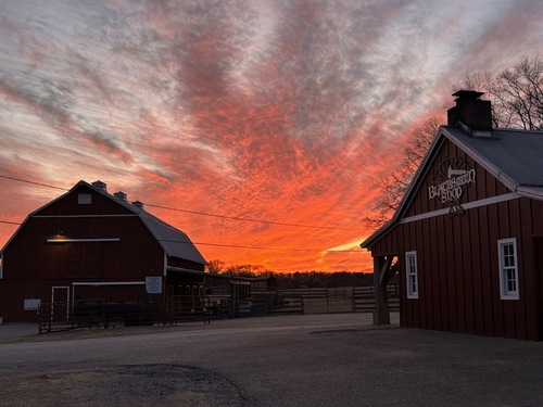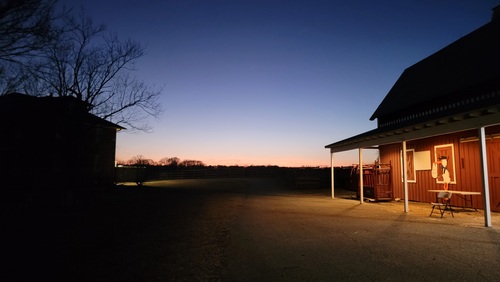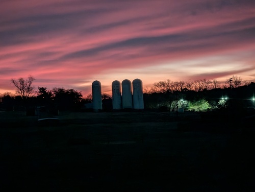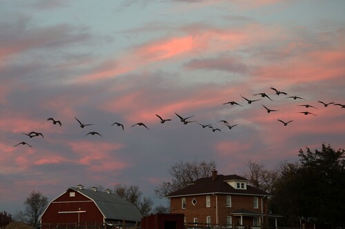 Geese Fly Over the Farmhouse and Barn - This was taken on Nov. 5, 2025, the night of the Beaver Moon, the brightest supermoon of the year…After the sun set, however, the twilight skies offered a beautiful coloring, and several groups of geese flew over the barns and silos… by Mirjam Spaar