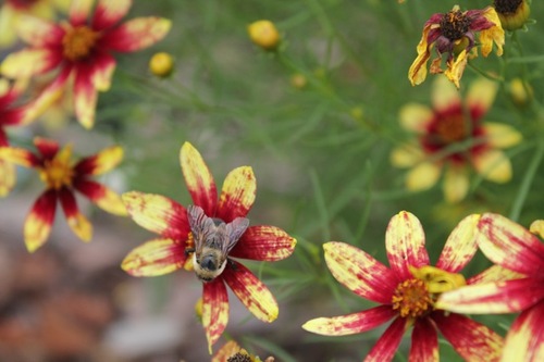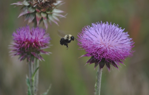 Taken of a bee polinating flowers at community gardens at Kinder Farm Park by Julianna M. Bouffard