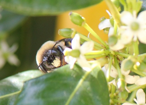 Taken of bumblebee collecting pollen from flowers in the community garden at Kinder Farm Park by Julianna M. Bouffard